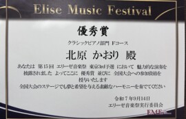 ~ピアノコンクール初挑戦で全国ファイナル、準優秀賞おめでとう!!~