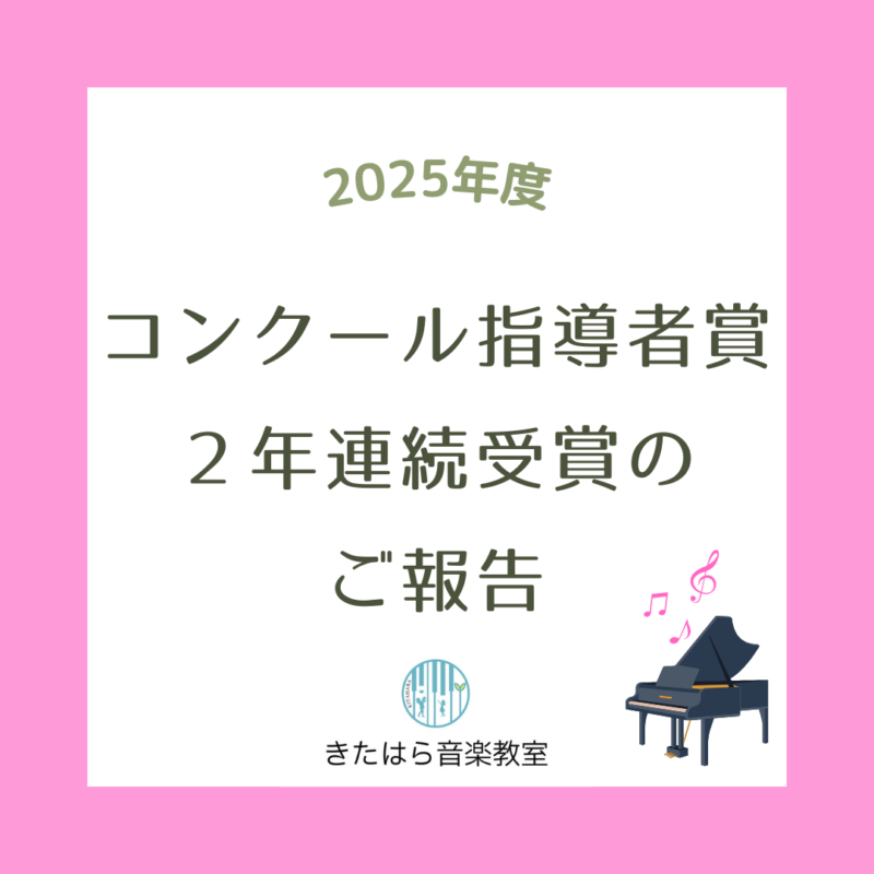 ピアノコンクール指導者賞 2年連続受賞のご報告